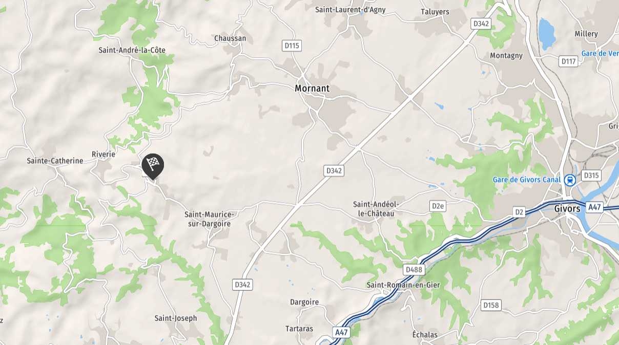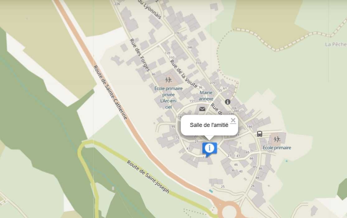 PLAN et PHOTOS pour arriver à la salle de l'Amitié, 35 Place des 2 Clochers - St-Didier-sous-Riverie 69440 CHABANIERE